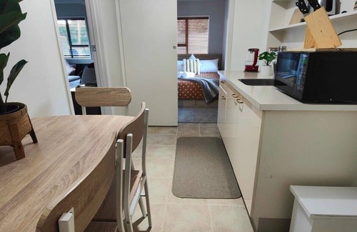Unwind in the master bedroom featuring a luxurious Queen-sized bed, while the adjacent room offers two snug single beds, ensuring a peaceful night's sleep for all. Downstairs has a space with a kitchenette, two bedrooms each with a queen-sized bed and a bathroom with a toilet and shower. Also downstairs is a garage where you can park your car. This space also houses a washing machine and dryer for you to use.