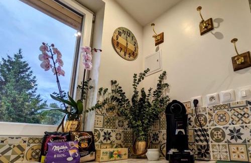 L’hébergement Studio de charme avec piscine de relaxation se situe à Moyaux, dans la région Basse-Normandie. Il comprend un balcon. Cette maison de vacances possède une piscine privée, un jardin et un parking privé gratuit. Cette maison de vacances comporte 1 chambre, 1 salle de bains, du linge de lit, des serviettes, une télévision à écran plat, un coin repas, une kitchenette entièrement équipée et une terrasse offrant une vue sur le jardin. Des serviettes et du linge de lit moyennant des frais supplémentaires. Vous séjournerez à respectivement 5,1 km et 13 km de ces lieux d’intérêt : Parc Zoologique Cerza et Basilique Sainte-Thérèse de Lisieux. L'aéroport le plus proche (Aéroport de Deauville - Normandie) est à 29 km.