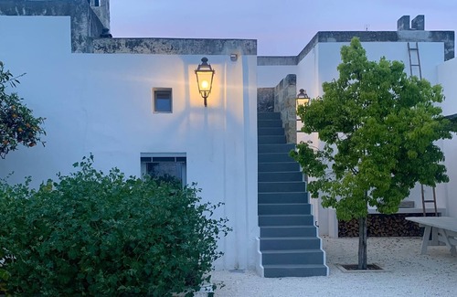 In the authentic south of Apulia, a stunning rehabilitation of houses from the early years of the last century. 9 units with high vaulted ceilings provide a sleeping area of 3 bedrooms and 3 independent bathrooms, 3 central units provide an indoor and outdoor living area. Enclosed by high walls that hide a courtyard arboretum of citrus trees, tangerines and oranges and wild mallow. Just few steps from the center of the village and 2 kilometers from Adriatic and Ionic seas.