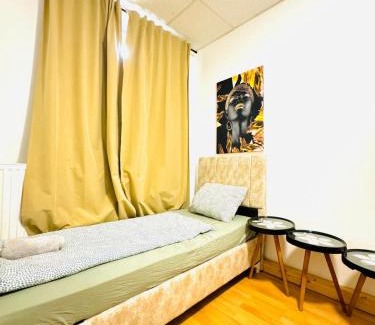RestaurationPlateau / bouilloireSalle de bainsBaignoire ou douche, Shampoing, Serviettes / linge de lit (frais supplémentaires), Papier toilette, Articles de toilette gratuits, Douche, Savon, Sèche-cheveux, Toilettes, Salle de bains privative, ServiettesCuisineRéfrigérateur, Micro-ondes, Bouilloire électrique, Cuisine, Table à manger, Lave-linge, Four, Plaque de cuissonCoin salonCoin repas, Canapé, Coin salon, BureauGénéralPoubelles, ChauffageChambreLinge de maisonAccessibilitéÉtages supérieurs accessibles uniquement par les escaliersCaractéristiques du bâtimentAppartement privé dans un immeubleÉquipements en chambreOreiller sans plumes |