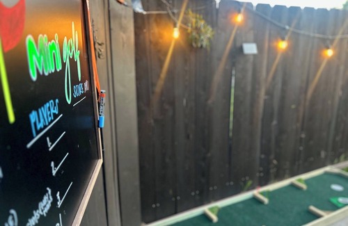 This 4-bed, 2-bath offers plush beds, mini golf, arcade, and is just 5 mins to PETCO, Gaslamp, and 10 mins from the airport! Fun for all with plenty of space for a comfortable stay. Our historic Craftsman home welcomes you with an open-concept living area featuring a comfortable sofa, two cozy chairs, and two wicker chairs flowing seamlessly into an 8-person dining space. Enjoy your favorite shows on the 50-inch Google TV after a day of adventures. Our unique arcade nook featuring a console loaded with 50+ vintage games (Pac-Man, Centipede, Dig Dug, and more), a foosball table, and classic board games.