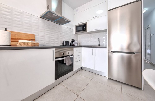 Nouvel appartement dans un complexe moderne et luxueux à Costa Teguise. Il comprend une chambre avec un lit double et un canapé-lit dans le salon. Salle de bain avec douche, lave-linge et sèche-cheveux. Cuisine entièrement équipée avec plaque de cuisson, four micro-ondes, grille-pain, cafetière à capsules, bouilloire et réfrigérateur. Wifi avec fibre, idéal pour le télétravail. Smart TV avec Netflix. Machine à laver, planche et fer à repasser.