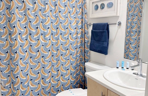 The whole group will enjoy easy access to everything from this centrally located place. The beach is across the street, and if you don’t like swimming in the ocean you can relax in the hot tub. The place is very spacious with a king bed in the master bedroom, a queen in the 2nd room and a queen pull out mattress you can use in the living room. The kitchen is filled equipped if you’re planning to cook.