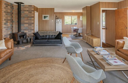Perfectly positioned just a street back from Whangapoua’s beachfront, you’ll be able to slip into holiday mode instantly here. The beach-facing deck provides the perfect setting for summer BBQs while the lawn gives the kids and the dog space to run free.