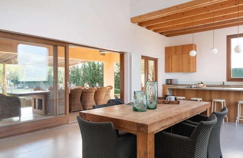 La finca propose plusieurs terrasses et porches, y compris une grande terrasse à manger pour 12 personneset un coin canapé confortable, idéal pour apprécier les soirées majorquines. Pour les loisirs, un porche supplémentaire abrite une table de ping-pong professionnelle.