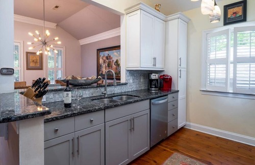 * Cuisine - Entièrement équipée et mise à jour. Comptoirs en granit. Fourneau à gaz. Four. Grand réfrigérateur en acier inoxydable. Lave-vaisselle. Élimination des ordures. Cafetière, four grille-pain, tous les appareils. Épices de base, casseroles et poêles, couverts. Joliment approvisionné. Passage ouvert vers la salle à manger et adjacent à la salle familiale. Tabourets de comptoir pour manger au comptoir en granit.