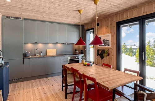 Maison de vacances de luxe avec de grands espaces près de Hafjell. Avec ses quatre chambres à coucher, elle offre suffisamment d'espace pour deux familles d'amis à la recherche de luxe dans une nature magnifique. La combinaison du style moderne et du charme des chalets norvégiens confère à la maison une atmosphère particulière. Pendant la journée, vous pouvez vous divertir autour de la longue table à manger sous les lampes rouges et planifier vos sorties en famille dans le coin canapé. Les grandes fenêtres offrent une vue unique sur les montagnes. Après une longue journée, vous pouvez vous faire plaisir dans le sauna. Le soir, buvez un verre de champagne pétillant à l'extérieur pour célébrer le temps passé en famille dans les montagnes aventureuses. Magnifique, n'est-ce pas ? Vous trouverez de superbes possibilités de randonnées dans les environs du chalet et du ski de fond juste devant la porte.