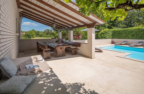 Belle maison de vacances à l'aménagement moderne, où l'on se sent bien, située dans une région calme et pittoresque. Les locaux sont répartis sur deux étages. Les enfants seront ravis de voir les nombreux animaux de la ferme. À côté de la maison se trouve un restaurant proposant une cuisine régionale typique, une konoba, où vous pourrez déguster des plats et des spécialités savoureuses. Dans la région, vous pouvez vraiment vous détendre, faire des randonnées, du vélo ou vous baigner sur la belle plage. Vous pouvez aussi simplement passer la journée au bord de la piscine. Celle-ci offre à tout moment un rafraîchissement bienvenu. Explorez la région et faites des excursions dans les petits villages accueillants de l'intérieur. Visitez également la jolie ville médiévale de Motovun avec ses anciens remparts. Motovun accueille également le festival annuel du film. La hauteur de plafond la plus basse dans les combles est de 1 mètre.