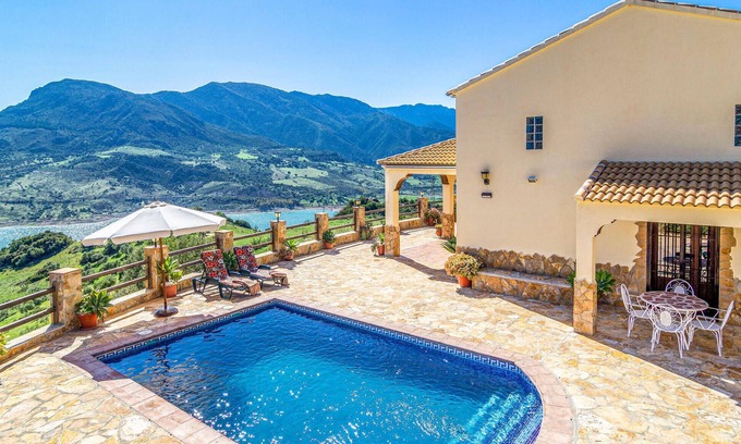 Depuis cette magnifique maison de vacances, vous avez une vue magnifique sur le lac de Zahara de la Sierra. Détendez-vous avec un bain rafraîchissant dans la fantastique piscine avec une grande terrasse. Depuis la véranda, vous pouvez profiter de la Sierra de Grazalema, un parc naturel déclaré réserve de biosphère par l'UNESCO. Le salon spacieux avec cheminée est très confortable et aménagé avec des meubles choisis. Les chambres à coucher accueillantes sont également lumineuses et confortables. L'emplacement privilégié permet de visiter Ronda, Jerez, Séville, Cordoue et Grenade. Les villages proches comme El Gastor, Olvera, Setenil de las Bodegas, etc. offrent une excellente gastronomie, des festivités locales et le charmant mode de vie typique des gens du sud. Le bois pour la cheminée peut être obtenu en payant un supplément.
