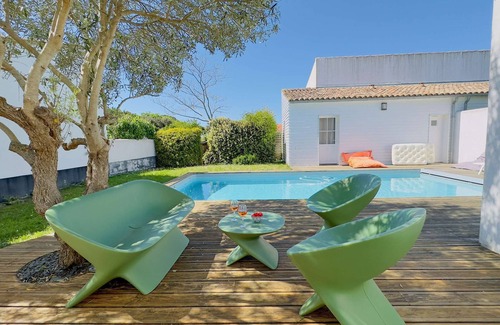 Superbe villa moderne avec piscine chauffée et parking à vélos. Parfaite le temps d'un long week-end iodé, ou mieux encore pour un séjour à la découverte des richesses de l'Ile de Ré. Cette superbe maison lumineuse et tout confort vous permettra de profiter de bons moments en famille ou entre amis! Ce bien vous est proposé en version 3 ou 4 chambres. WIFI - MENAGE FIN DE SEJOUR ET LINGE OBLIGATOIRES (Linge de lit, serviette de toilette, tapis de bain, torchons)