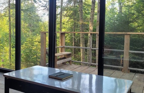 La cabane Tetris s'inspire des maisons en conteneurs, offrant un espace contemporain et bien éclairé, efficace et élégant. Son design astucieux optimise l'espace et la lumière du soleil, attirant les amateurs de simplicité et d'architecture moderne. L'intérieur minimaliste ajoute à son atmosphère ouverte et accueillante.