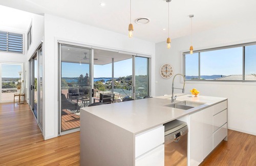 Step into this large, beautifully appointed family home with stunning water views that combines coastal décor and modern styling. With four spacious bedrooms and three modern bathrooms, this property comfortably accommodates families and groups. The well-equipped, family-sized kitchen makes entertaining easy, while the expansive living areas, games room and study ensure everyone has space to relax or stay connected.
