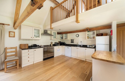This home has two open-plan spaces with kitchen, dining area and sitting area with open fire, two utilities, four king-size bedrooms - 3 with en-suites, three twin bedrooms - one with en-suite, one triple single room and two separate bathrooms. Appliances consist of 2 x electric oven and hob, microwave, fridge/freezer, washing machine, dishwasher, Nespresso coffee machine and hairdryer, and for entertainment, two TVs with Freeview, DVD player, and table tennis. Outside there are two enclosed rear gardens with lawn, patio, furniture and barbecue, access to a small lake with surrounding grounds, and off-road parking for seven cars. Three well-behaved dogs welcomed at a supplement, but sorry, no smoking. WiFi, fuel, power, bed linen and towels are all included in the price, along with two cots and two highchairs. You'll find a shop and a pub in 1.4 miles. Westonbirt Arboretum 1 mile. Escape to Gloucestershire as a family at The Long Barn. Note: Please be aware that there is an open pond, outside of the enclosed garden and children must be supervised at all times outside.