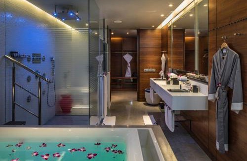 RestaurationFruits, Bouteille d'eau, Chocolats ou biscuits, Plateau / bouilloire, MinibarSalle de bainsBonnet de douche, Douche, Peignoir, Salle de bains privative, Serviettes, Chaussons, Papier toilette, Brosse à dents, Savon, Après-shampoing, Serviettes / linge de lit (frais supplémentaires), Toilettes, Baignoire, Articles de toilette gratuits, Sèche-cheveux, Baignoire ou douche, Douche à l'italienne, ShampoingGénéralCoffre-fort pour ordinateur portable, Extincteur, Carte d'accès, Détecteur de fumée, Entrée privée, Chambre anti-allergie, Casiers, Sol carrelé / en marbre, Fer à repasser, Climatisation, Moquette, Insonorisation, Clé d'accès, Chauffage, Poubelles, Presse à pantalons, Coffre-fort, Matériel de repassageHigh-techRadio, Télévision à écran plat, Service de streaming (ex. Netflix), Chaînes du câble, Téléphone, Lecteur DVD, Télévision, Lecteur CD, Vidéo, Chaînes satelliteServicesService de réveil / réveil, Service de réveil, Accès au salon exécutifCoin salonCoin salon, Canapé, BureauChambreArmoire ou penderie, Lits enfant/berceaux, Réveil, Très grands lits (> 2 mètres de long), Linge de maisonVueVue sur la piscine, Vue, Vue sur la ville, Vue sur le lacCuisineSèche-linge, Machine à café, Produits ménagers, Bouilloire électriqueAccessibilitéCordon d'alarme dans la salle de bains, Étages supérieurs accessibles par ascenseur, Accessible par ascenseur, Logement entièrement accessible en fauteuil roulantÉquipements en chambreOreiller sans plumes, Oreiller hypoallergénique, Lit pliant, Adaptateur, Oreiller en plumes, Portant, Prise près du litDivertissements et services aux famillesCache-prises pour enfants, Barrières de sécurité pour bébésEspaces piscine et bien-êtreServiettes de piscine, Piscine avec vue, Piscine d'eau salée, Piscine à débordement, Piscine sur le toit, Espace peu profond, Bassin profondServices exclusifsAccès gratuit à la salle de sport |