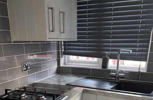 Offering a 3-bed terraced house with a garden and free private parking on property located in Waltham Cross. This house has WiFi and a living room, dining area, kitchen, and bathroom. Equipped with a smart TV, washing machine, tumble dryer, and standard kitchen amenities.