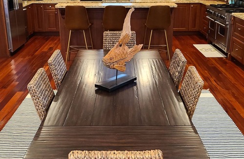 Un barbecue, la climatisation, un bureau et un espace bureau équipent également cette location avec 4 chambres et 4.5 salles de bain. Il y a également une baignoire à jets, mais aussi des serviettes, du papier toilette et un sèche-cheveux. Dans la cuisine, vous trouverez un four, une plaque de cuisson et un réfrigérateur, mais aussi une cafetière, un distributeur de glaçons et une casserole à homard. Et grâce à la machine à laver et au sèche-linge, vous pourrez même vous permettre de voyager un peu plus léger.