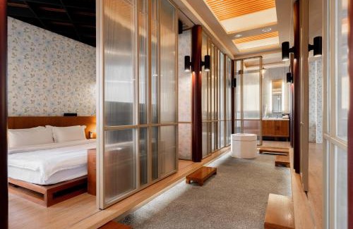 Situé à Yilan, le Tian Xia Ju vous propose gratuitement une connexion Wi-Fi gratuite ainsi que des chambres spacieuses et luxueuses avec un bain à remous et un vaste salon. Présentant un mélange unique d'éléments chinois traditionnels et modernes, les très grandes chambres disposent de la climatisation, d'une télévision à écran plat, d'un minibar ainsi que d'une bouilloire électrique. Leur salle de bains est privative. Vous pourrez aussi bénéficier d'un service d'étage. L'établissement se trouve à 5 minutes en voiture du marché nocturne de Dongmen et à moins de 8 minutes de route de la gare de Yilan ainsi que du centre commercial Luna Plaza.