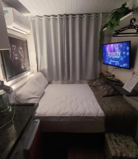 Situé à Canoinhas, l’établissement Tiny House Aconchego propose un jardin. Cette maison d'hôtes propose également une connexion Wi-Fi gratuite et un parking privé gratuit. Les hébergements sont dotés de la climatisation, d’un réfrigérateur, d’un micro-ondes, d’une bouilloire, d’une douche, d'articles de toilette gratuits et d’une armoire. Vous profiterez d’une salle de bains privative, d'un sèche-cheveux et de linge de lit. L'aéroport le plus proche (Aéroport d’União da Vitória) est à 84 km.