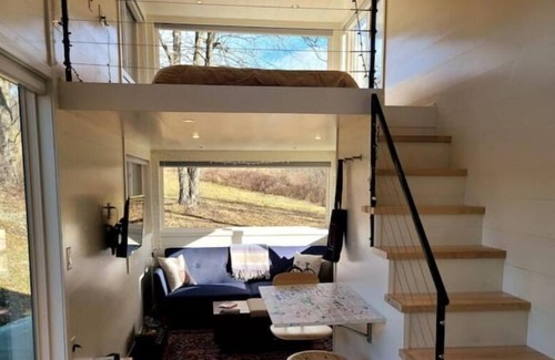 Welcome to "The Tiny" at The Hemptons in Upstate New York! The not-so-tiny house is 400sf with plenty of space to stretch out. Each of the two bedroom lofts have a comfy queen bed on a low profile frame. The kitchen is equipped for basic cooking (read: Not good for Thanksgiving, but perfectly suited for standard cooking endeavors). Although we'd encourage you to check out many the local eateries (see below)! The bathroom is full size and likely bigger than the one in your first NYC apartment.