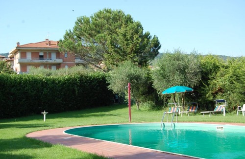Située au coeur de l'Italie et immergée dans sa belle nature, à la frontière entre l'Ombrie et la Toscane, sur le lac Trasimène, cette imposante villa offre des attractions culturelles et diverses à tous ses invités, de tous âges. La résidence se trouve à deux pas de Cortona (une célèbre ville étrusque) et des villes d'art impressionnantes comme Arezzo, Perugia, Sienne, Gubbio, Assise, Orvieto, etc. sont également faciles à joindre à partir d'ici.La villa est très adaptée aux familles, elle est entourée de vastes espaces ouverts, elle dispose d'un grand jardin (de plus de 40 mètres de largeur et de 60 mètres) avec des arbres en fleurs et des plantes variées; Il y a une belle piscine (14m x 7m) située entre la verdure, à quelques minutes à pied des installations sportives.La maison a trois étages et sa surface a été divisée en plusieurs appartements nouvellement construits. En entrant dans la grande porte du bâtiment, vous trouverez un escalier en marbre vous conduisant à chaque étage. Ensuite, il y a trois portes, une à chaque étage pour chaque appartement. D'un côté de la maison, une petite allée permet aux voitures d'accéder à un parking souterrain.Chaque appartement dispose d'une grande terrasse meublée avec deux hamacs, une chaise longue et un parasol. Le propriétaire dispose également d'un grand jardin qui peut être utilisé par les invités. Dans le sous-sol, il y a un lave-linge à usage commun.
