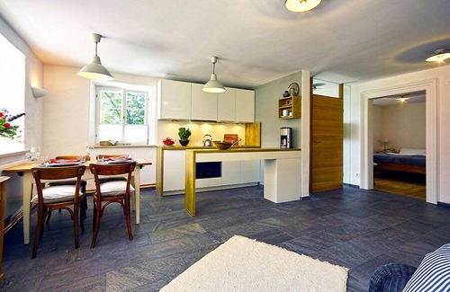 L'appartement est situé dans un presbytère vieux de 500 ans, qui a été rénové en 2014 avec des matériaux historiques.