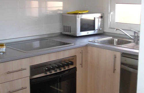 The modern American style open-plan kitchen is equipped with high quality stainless steel appliances: oven, hob, fridge/freezer, washing machine, dishwasher, microwave, kettle, toaster and iron. The apartment is fully equipped with cookware, china dinnerware and cutlery, glassware and cooking utensils. The indoor dining area seats four comfortably but has an extending table to seat six if required. The living area has a recliner sofa, a 42" flat screen smart TV, DVD-player, WIFI and a A/C unit.