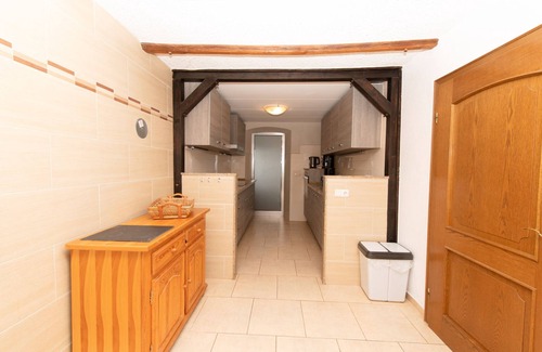 The village Bettenfeld lies in the middle of the nature of the Vulkaneifel. You will discover it 5 km west of Manderscheid. There is also the famous castle and the Meerfelder Maar. You have a spacious, well-equipped holiday home in the middle of nature, so you can enjoy a fantastic view from the garden. Garden for children and separate piece for dogs. You have 7 bedrooms and 4 bathrooms spacious living room, kitchen and dining room. There is a garage for bicycles and motorbikes. The picturesque location guarantees lots of walking pleasure. Here the river Lieser winds through the landscape with the ruins of the Niederburg below. The lake Meerfelder But was formerly a volcano crater. You reach the lake directly from Bettenfeld via a winding road between two smaller crater lakes. In Manderscheid is also the precious stone grinding. A nice day trip will take you to the towns of Daun (20 km) and Wittlich (25 km).
