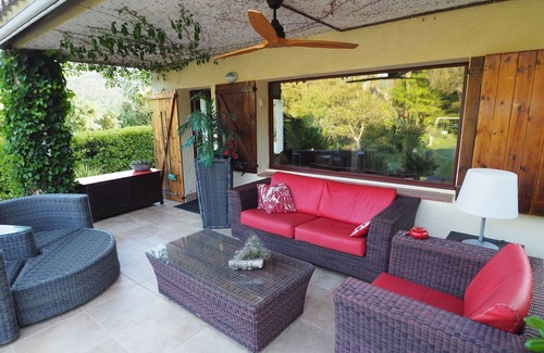 ¡Una casa de ensueño! Cuando entres en el camino de entrada experimentarás inmediatamente una sensación de amplitud, libertad y tranquilidad absoluta. Esta casa de ensueño se encuentra en los bellos bosques sobre las colinas de Les Gavarres y a escasa distancia de la preciosa y escarpada costa con hermosas playas. Tienes acceso a dos piscinas: una piscina privada con ducha exterior, tumbonas, una gran casa de juegos, casita de madera con tobogán, columpios, arenero, mesa de ping-pong (no te olvides las palas y las pelotas de ping-pong) y gran tablero de ajedrez exterior. La otra piscina (longitud de 25 m, de pago) está a unos 500 m. Hay una zona para tomar el sol, dos pistas de tenis (de pago) y un bonito restaurante (abiertos solo en temporada alta).