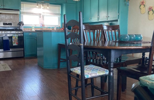 3 Bedroom/2 bathroom fully furnished coastal bay house able to accommodate 7 comfortably located on East Bayshore Dr. in Palacios, TX. All new stainless steel appliances, combo washer/dryer, and central air and heat. Closets in each bedroom with XL TV in living room. Designated sitting area in enlarged downstairs master suite suitable for working remotely. Relax on the enlarged deck, enjoy sunbathing or simply enjoy the breathtaking sunrises and sunsets. Extra couch upstairs and 2 sleeper chairs in the living room if you happen to have unexpected guests. Feel the cool bay breeze and watch coastal birds flying overhead.