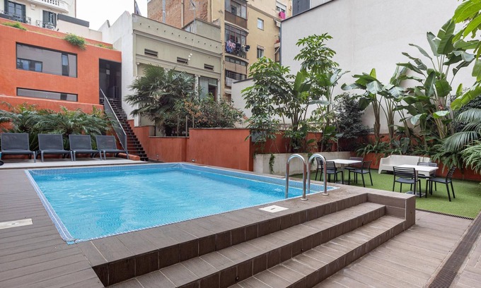 Moderno y acogedor apartamento de dos habitaciones en Barcelona, con jardín y piscina comunitaria. Situado en el barrio de Gràcia, una de las zonas más vivas de la ciudad, ofrece una excelente conexión en transporte público. La estancia perfecta para relajarse, tomar el sol y explorar la ciudad con todas las comodidades.