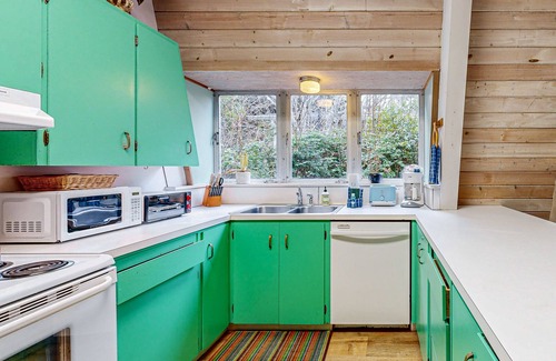 Rassemblez-vous autour de l'unique cheminée à bois au centre du salon, plongez dans le bain à remous de la chambre principale ou promenez-vous sur la plage paisible de cette location de vacances à Gleneden Beach!