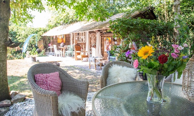 This unique atelier is tastefully decorated and blessed with a quiet, natural setting. 'The Atelier' is ideal for a relaxing getaway alone or with a partner. The best bakery in the Netherlands is across the street. You can retreat here, easels are available, also writing a book is ideal here. The house is sheltered and at the same time it is a house with all the comforts and there is plenty to do nearby. Since the beginning of 2023, there is also a nice outdoor hot tub where you can get nice and warm. You imagine yourself in the middle of nature here, and while enjoying the squirrels and singing birds you plan your next walking route through beautiful Drenthe, because it is located on the Pieterpad. Through one of the beautiful nature reserves? Or through nice nearby towns such as Emmen, Meppel or the world-famous Giethoorn? With its location in the most central street of the quiet village of Sleen, you still have everything within easy reach from here. Relax in the cozy living room with smart TV, sitting area and fireplace and indulge in the reading wall with various books provided by the owner. Through a beautiful spiral staircase in the living room you reach the spacious bedroom with comfortable box spring and sloping walls for a cozy atmosphere. You can show off your cooking skills in the kitchen and the luxurious bathroom is equipped with an advanced jet stream with lighting and radio, sink and toilet. In the sunny garden or under the veranda you can end the day relaxing. Or recently sitting in the brand new hot tub. The house is located on the Pieterpad. It is at the beginning and at the end point of a route, so spending the night here is ideal. Emmen is 7 km away.