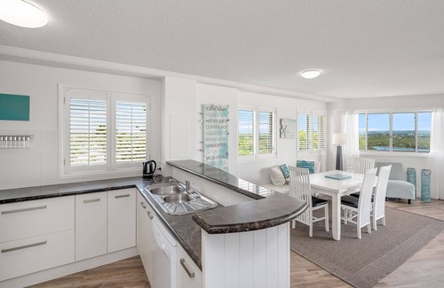 L'unité 13 a été entièrement rénovée dans un thème de plage ultra moderne. Il est situ�� au 7ème étage avec ascenseur. L'unité dispose d'un salon spacieux et ouvert, de 3 chambres à coucher, de 2 salles de bains. Il va dormir confortablement votre famille de 6 personnes. Les doubles portes coulissantes du salon s'ouvrent sur un immense balcon orienté au nord offrant une vue imprenable sur le lac Currimundi, la plage de l'oc��an et les voies de navigation. La chambre principale et la 3ème chambre ont également un balcon plus petit avec vue sur le nord et la plage de Moffat au sud.