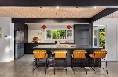 Non, Updated Mid-Century Modern Retreat ne dispose pas d'une piscine. Voir les détails sur la disponibilité de la piscine intérieure ou privée et d'autres installations.