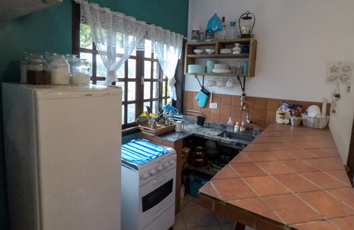 Maison confortable avec 2 suites étant une avec un lit double et une avec deux lits superposés, balcon avec barbecue, cuisine avec ustensiles, salle de séjour avec t. v. câble et canapé-lit, espace de stationnement, ventilateurs de plafond dans toutes les chambres, coffre-fort, confortable et spacieux, chaises de plage et parasol, excellent emplacement, près de la plage de Juquehy, centres commerciaux, restaurants et pharmacies.