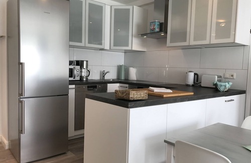 A travers les grandes fenêtres de l'appartement brille en toute saison dans une lumière lumineuse et conviviale. Combler le ouvert, cuisine entièrement équipée, salon et salle à manger et offre l'occasion idéale pour socialiser et soirées de cuisine confortables.
