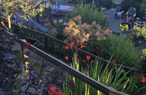 With multiple outdoor areas, you may find that you prefer spending most of your time outdoors. Outside you will find two spacious view decks with a comfortable outdoor couch and private hot tub. There is a delightful wooden garden path that will take you to a private waterfront area that includes a picnic area and a private fire pit. While enjoying this outdoor space, guests will often remark, "This looks straight out of Sunset Magazine." The sounds and smells of nature will delight your senses. Bird watching, sunrises, an abundant garden, incredible sea life. It is hard to deny the allure of the natural beauty that surrounds.