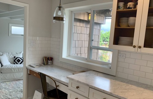 Feel the fresh sea air, accompanied by beautiful views and the soothing sounds of nature. Experience Puget Sound waterfront in style and comfort from this darling two-bedroom, two-bath home on Vashon Island. This home is easily accessible and enjoyable for all seasons. The open living, kitchen and dining area welcomes guests with gorgeous water and mountain views. Comfortable furnishings and a cozy dining banquet that has room for up to 6. The living room has a wood-burning stove and comfortable seating areas that make this an ideal place to relax with a good book or play a game with the family. The bright and modern kitchen is spacious and fully equipped with everything necessary for a simple or gourmet meal. There is also a den with sleeper couch and TV, a quiet space to unwind. Within a few short steps of the main home, is a small studio space with a loft bed, pull out sofa, and TV. A perfect space for someone that needs complete privacy while working remotely.