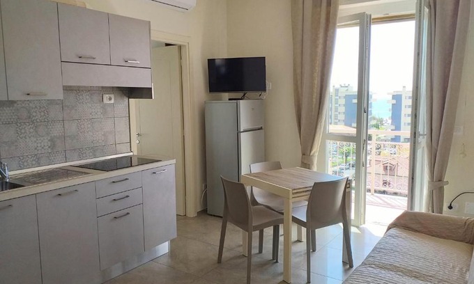 Situé à 400 mètres de la plage de Marina d' Andora, l'ANDORAMARE APARTMENTS propose des hébergements climatisés avec balcon. Offrant une vue sur la mer, l'appartement comprend une terrasse, un coin salon, une télévision à écran plat, une cuisine entièrement équipée avec un micro-ondes et un réfrigérateur ainsi qu'une salle de bains privative pourvue d'une douche et d'un sèche-cheveux. Des plaques de cuisson, des ustensiles de cuisine et une machine à café sont également fournis. Vous pourrez faire du vélo et de la randonnée dans les environs. Vous séjournerez à 47 km de la place Bresca et de la co-cathédrale San Siro.