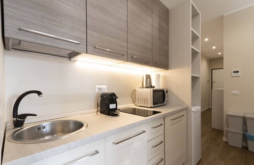 Appartement moderne de trois pièces au cœur de Milan pouvant accueillir jusqu'à 4 lits. Il dispose d'une pièce à vivre lumineuse et moderne avec table à manger et d'une kitchenette entièrement équipée.