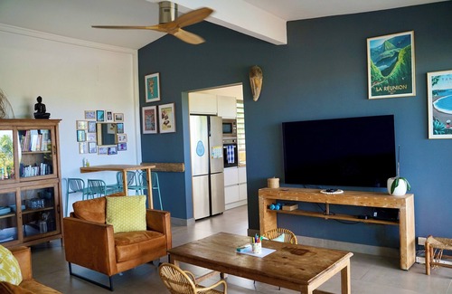 Depuis le jardin, terrasse et varangue, vous pourrez profiter d'une superbe vue panoramique à 180° sur le littoral, vous pourrez notamment apercevoir de nombreux oiseaux locaux (merles de Maurice, papangues, cardinal, tec-tec, pailles-en-queue...), ainsi que des lézards et margouillas, mais également, durant la saison, repérer de loin les sauts des baleines !