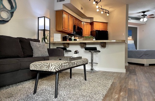 Joliment décorée en gardant à l'esprit tous les conforts de la maison, cette villa est parfaite pour un couple ou une famille de quatre personnes. La chambre a un lit queen avec matelas Tempurpedic pour une nuit de sommeil confortable. Le salon dispose d'un canapé-lit. La cuisine est bien équipée avec des pots et des casseroles et du thé / café gratuit. Laveuse / sécheuse sont disponibles à la buanderie commune dans le complexe.