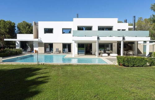 Un salon, un coin salle à manger, un barbecue et une cheminée équipent également cette location avec 5 chambres et 5 salles de bain. Il y a également une baignoire à jets, mais aussi un bidet, des serviettes et un sèche-cheveux. Préparez un bon petit plat maison dans la cuisine équipée de tout le nécessaire : un four, une plaque de cuisson et un réfrigérateur, mais aussi une cafetière, un micro-ondes et des ustensiles de cuisine. Et grâce à la machine à laver et au sèche-linge, vous pourrez même vous permettre de voyager un peu plus léger.