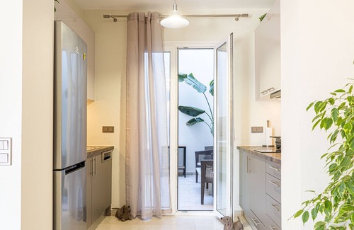 On the lower floor of the Villa, a cozy space, decorated with great care and elegant taste offers a beautiful space to relax. A home cinema with dolby surround soundbar, 65 HDTV with Netflix, Playstation 4 and comfortable seating area will allow you to enjoy fun moments with your loved ones. Furthermore, a gym area equipped with a static bike, elliptical machine, free weights, bench press, mats and 32 smart TV is ideal to follow on your workouts even during your holiday! Additionally, an extra bathroom with hot tub/jacuzzi bathtub is the perfect place to relax after a long day at the beach. Finally, a well equipped third kitchen provides access to the BBQ area, through a back door.