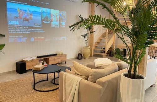 Salle de bainsServiettes, Baignoire ou douche, Sèche-cheveux, Salle de bains privative, Chaussons, Douche, BaignoireHigh-techTélévision, Télévision à écran plat, Service de streaming (ex. Netflix)GénéralClimatisation, Matériel de repassage, Parquet, Détecteur de fumée, Chauffage, PoubellesActivitésBain à remousCuisineSèche-linge, Bouilloire électrique, Produits ménagers, Verres à vin, Grille-pain, Lave-vaisselle, Table à manger, Four, Plaque de cuisson, Machine à café, Cuisine, Lave-linge, Réfrigérateur, Ustensiles de cuisine, Micro-ondesCoin salonCanapé, Coin salon, Coin repasChambreDressing, Linge de maison, Lits enfant/berceaux, Armoire ou penderieVueVue sur le jardinEn extérieurEspace repas extérieur, Terrasse, Mobilier d’extérieurCaractéristiques du bâtimentMitoyenÉquipements en chambreÉtendoir, Prise près du lit, Oreiller sans plumesDivertissements et services aux famillesJeux de société / puzzles |
