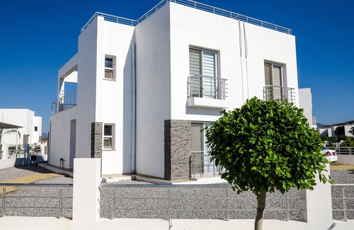 Magnifique villa flambant neuve dans le complexe en bord de mer de Caesar Beach - l'une des meilleures du côté «Golden Sands» de Chypre du Nord. La villa de 3 chambres et 2 salles de bains est conçue et finie selon les spécifications les plus élevées. La villa est située à 1 min (100m) d'une magnifique plage de sable privée, avec ses eaux bleues claires et calmes - idéal pour une baignade tôt le matin! Complexe de luxe avec deux piscines publiques, aires de jeux, jacuzzi, salle de gym, sauna, restaurant - idéal pour des vacances 5 étoiles.