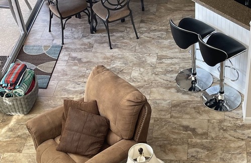 Cette belle maison de 5 chambres et 4 salles de bain a été récemment rénovée. Il dispose d'un maître roi en-suite avec un dressing, également une reine en-suite, et peut accueillir confortablement jusqu'à 10 personnes. Cette étonnante maison dispose d'une piscine orientée plein sud avec un spa, avec chauffage en option pendant les mois les plus froids. Il y a une cuisine entièrement équipée avec tout le nécessaire pour préparer un petit déjeuner rapide avant d'aller dans les parcs et une mijoteuse pour que vous puissiez préparer votre dîner à votre retour. il y a aussi un barbecue inclus avec la maison pour que vous puissiez griller votre dîner. Après le dîner, la famille peut profiter d'une partie de billard ou faire une partie de hockey sur air ou de ping-pong. La véranda couverte offre une pause du soleil sur les chaudes journées d'été assis autour de la piscine. Il y a une salle familiale au plafond élevé avec une télévision grand écran et un lecteur DVD pour une nuit plus calme loin de la précipitation. Cette maison dispose également d'un accès Internet gratuit ainsi que de l'interurbain gratuit aux États-Unis et au Canada. La maison dispose également d'un parc pour dormir, d'une chaise haute et d'une poussette