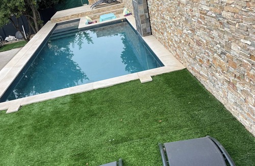 Magnifique villa refaite a neuf ideale pour des vacances en famille , entouree dun joli jardin avec un parking gratuit, une piscine hors sol est a votre disposition , le logement a la climatisation ou vous pourrrez etre au frais et un projecteur pour vos soirees, nous sommes a 15 min du centre ville, vous vaez un geant casino juste a cote et des restaurants. Le parc est magnifique pour se promener, c est un endroit plein de charme ou vous allez pouvoir gouter a la douce vie du sud. accessible avec l autoroute pour aller visiter la region.