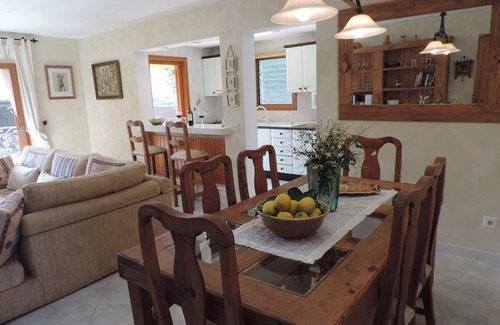 La villa dispose de deux étages. Au rez-de-chaussée il ya une chambre double, une salle de bains et cuisine avec bar ayant un espace commun et ample avec le salon et la véranda, dans lequel vous pouvez également apprécier une autre salle à manger et une zone détente avec canapés, profiter de chaque instant de la vue sur la piscine et le jardin. A l'étage, une chambre double et une autre chambre avec terrasse et une salle de bains complète.