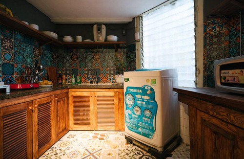 Nous avons également étudié et équipé la villa avec des équipements modernes afin d’amener la vie la plus confortable possible tout en conservant l’architecture inhérente unique. Ce qui signifie que vous pouvez découvrir la culture architecturale vietnamienne et la commodité à la fois. Vous pouvez trouver tout ce dont vous avez besoin, comme à la maison: climatisation, huile essentielle de luxe, wifi gratuit, télévision à écran plat, matelas à ressorts haut de gamme, canapé, articles ménagers, cuisine, barbecue, four micro-ondes, réfrigérateur, cheveux sèche-linge, fer à repasser, lave-linge, commodités, etc ...